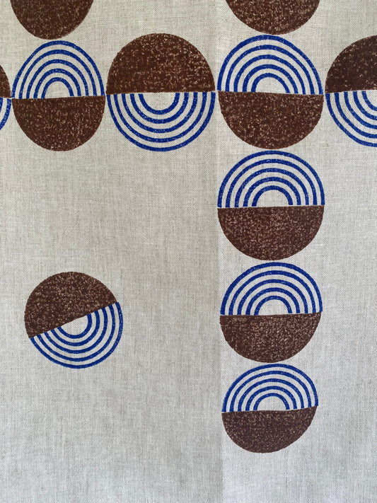 Block Printed Circle Linen Tea Towel