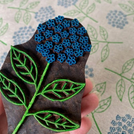 Block Printed Hydrangea Linen Tea Towel